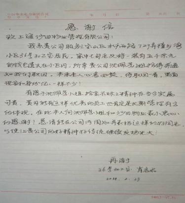 2014年2月14日,在傳統的“元宵節(jié)”和西方“情人節(jié)”當天,江蘇分公司—華新一品全體員工收到了一份業(yè)主的禮物。由于華新一品秩序維護員在地下車庫巡邏時,撿到業(yè)主的結婚紀念品,并立即交給班長,班長通過搜索錄像找到失主,失主為表達感謝之情,送來了“服務熱情、拾金不昧”的錦旗。 2014年2月15日,上投佳苑小區(qū)業(yè)主到管理部繳納物業(yè)管理費時不慎將小包遺落在管理部,管理部在發(fā)現后,第一時間聯系到業(yè)主家人,當時業(yè)主尚不知自己遺落了包,接電話后匆忙趕到管理部,核對了包內物品,對管理部員工表示由衷的感激。失主為了表達感謝之情,并于2014年2月23日送來表揚信一封,向管理部表示敬意。 為了弘揚這種拾金不昧的精神,公司召廣大員工以華新一品、上投佳苑管理部為榜樣,不斷強化自身素質,提升服務質量。為創(chuàng)建“用心服務,與業(yè)主共創(chuàng)美好家園”的服務理念而共同努力! |