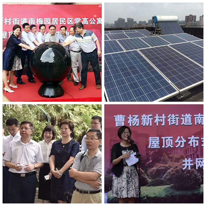 7月18日上海市首個居民區(qū)屋頂光伏發(fā)電項(xiàng)目曹楊新村南梅園居民區(qū)屋頂分布式發(fā)電項(xiàng)目并網(wǎng)發(fā)電儀式在我司所轄項(xiàng)目部常高公寓舉行。市、區(qū)、街道各級領(lǐng)導(dǎo)及常高公寓業(yè)委會、上海市電力公司、公司總經(jīng)理趙總參加了光伏發(fā)電儀式。光伏發(fā)電是可再生能源領(lǐng)域,它資源豐富,對環(huán)境無任何污染,希望通過各方的共同努力,這項(xiàng)節(jié)能減排降低污染的先進(jìn)技術(shù)能更好地造福百姓。