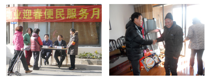為營(yíng)造一個(gè)歡樂(lè)和諧舒適的春節(jié)氛圍,逸仙華庭管理部于2014年1月23日開(kāi)展了“迎春便民服務(wù)月”,如上門維修回訪,看望獨(dú)居老人和孤老,主動(dòng)上門到業(yè)主家中傾聽(tīng)業(yè)主對(duì)物業(yè)管理的意見(jiàn)等。 這次活動(dòng),管理部解決了部分業(yè)主的急、難、愁問(wèn)題,拉近了管理部與業(yè)主的距離,化解了矛盾,并取得了業(yè)主的支持和理解,為創(chuàng)建和諧社區(qū)打下了良好基礎(chǔ)。 |
